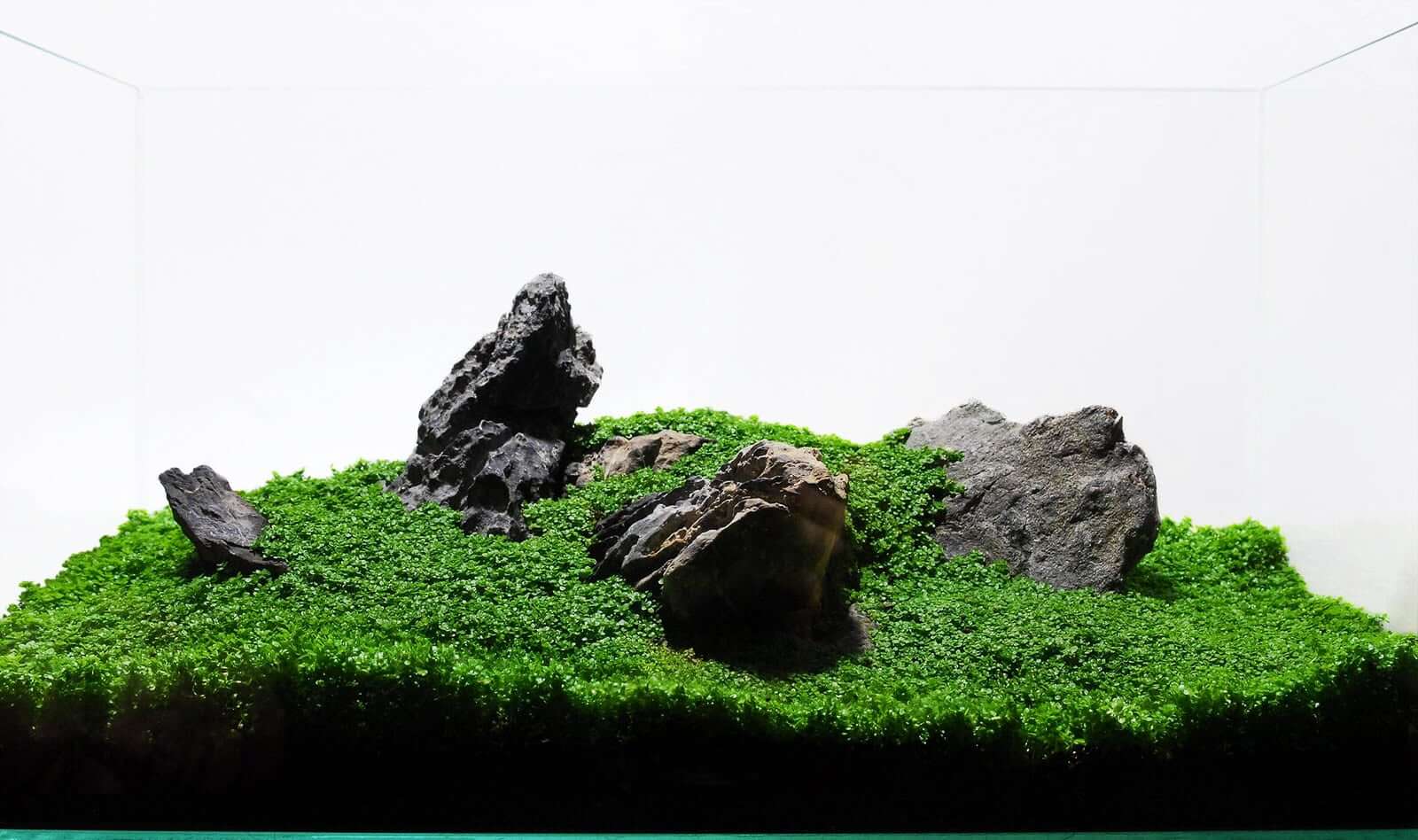 As opposed to the Dutch style, which only makes use of plants, the implementation of the Iwagumi aquascaping style is based on the design of an arrangement of rocks (hardscape), their positioning being particularly careful. Only 1 to 3 species of aquatic plants are used.