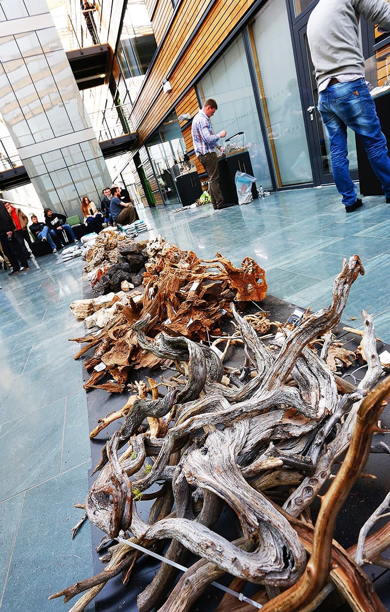 The aquascaping event was hosted in two main areas. The huge reception area was occupied by the 10 Hardscape Challenge tanks and 3 live mature planted aquascapes, all positioned strategically along either size of the space.