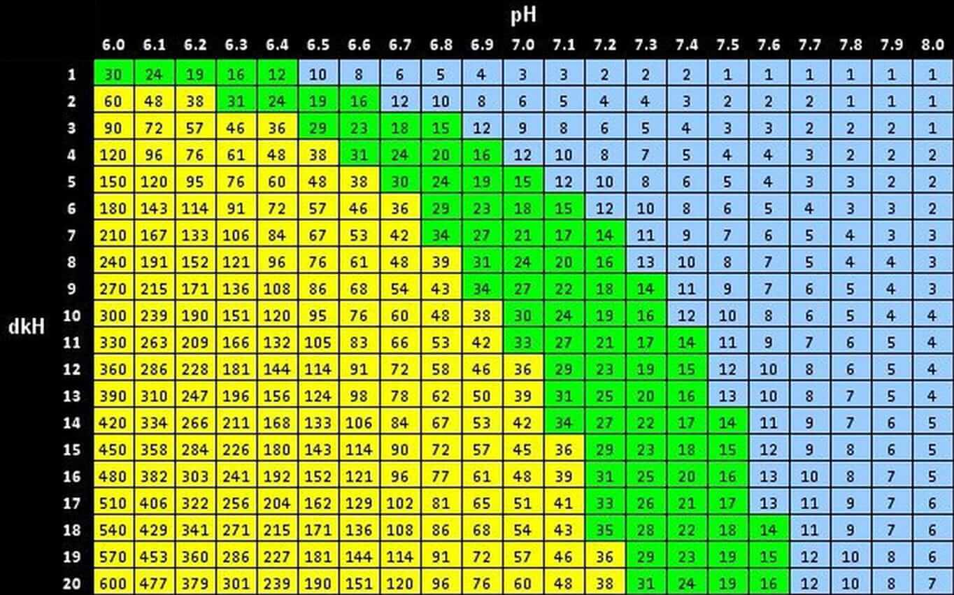 The KH value is directly related to your water’s pH, and will determine its variation. A higher KH results in a more stable pH value, but when KH drops, so does your pH.