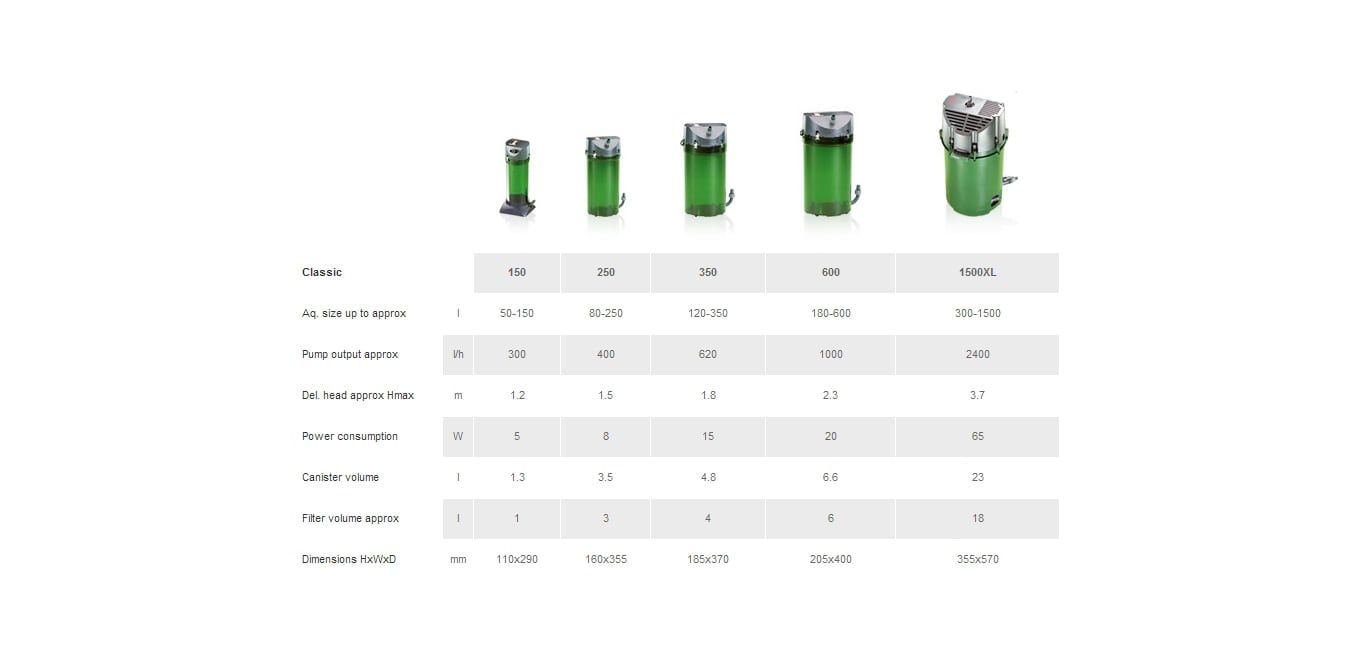 - There are five models to choose from, meaning that there are filters available for aquariums up to 1500 litres